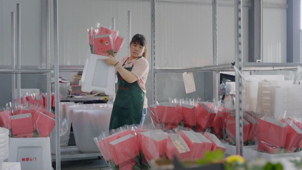 在晋宁昆阳张良花卉专业合作社的包装车间内,工人们忙着分拣、包装和打包,现场一派繁忙。云南晋宁昆阳张良花卉专业合作社负责人张良表示,最近白色、红色和粉色的玫瑰鲜切花特别受欢迎,每天出货量20多万枝。“我们的花主要发往上海、重庆、广州等城市。目前整个销售量情况比较良好,订单还在持续增长。”